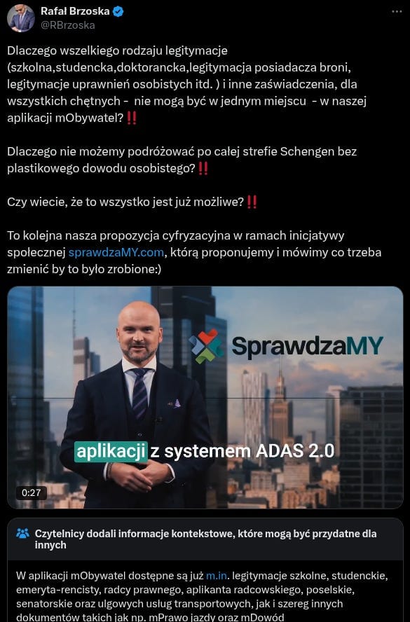 Ale w tym tygodniu poszedł jeszcze dalej. W czwartek zapowiedział, że dzięki jego innowacyjnym innowacjom czeka nas innowacja polegająca na tym, że dokumenty w rodzaju legitymacji uczniowskiej, studenckiej i innych będziemy mogli mieć w aplikacji mObywatel. Szkoda tylko, że nikt Rafałowi nie powiedział, że już możemy.